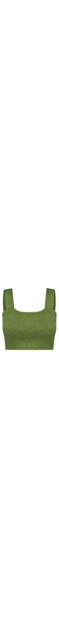 O top verde é confeccionado em tricot. A peça possui decote reto frontal e posterior, alças médias, cavas regulares, comprimento cropped* e shape justo.
