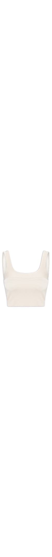 O top off white é confeccionado em tecido leve com superfície texturizada e média elasticidade. A peça justa ao corpo possui decote arredondado, alças finas, recorte frontal e posterior, foro e comprimento cropped*.