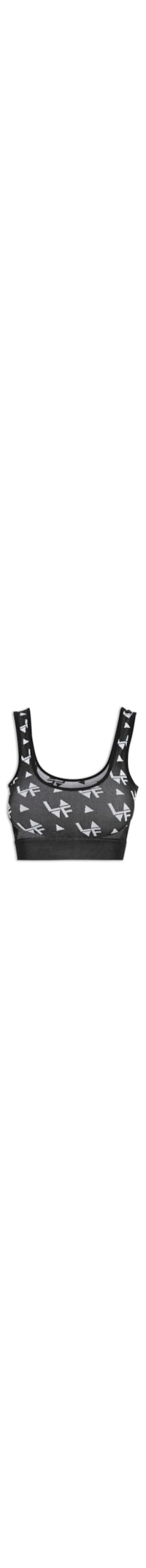 O top preto é confeccionado em malha leve de alta elasticidade. A peça justa ao corpo, possui decote redondo, alças médias, padronagem do logo da marca em cores contrastantes e barra larga elástica.