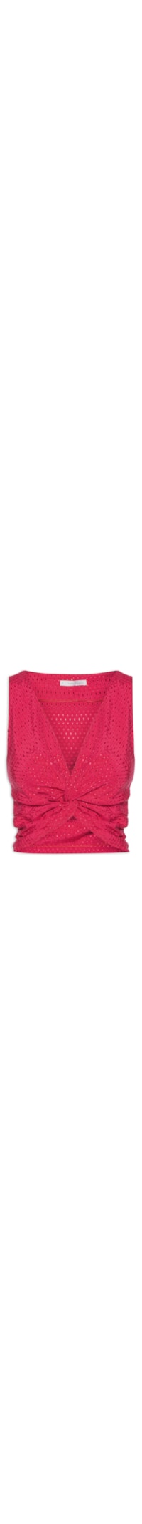 O top rosa é confeccionado em tecido leve sem elasticidade. A peça justa ao corpo possui decote em V, alças médias, detalhe torcido frontal, bordados em formato de losango, comprimento cropped* e fechamento lateral por zíper.