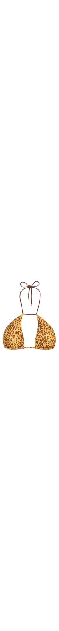 top animal print é confeccionado em malha. A peça  de modelo triângulo possui canaleta ajustável, alças finas trançadas, recorte frontal vazado, forro aplicado e fechamento posterior por amarraçã