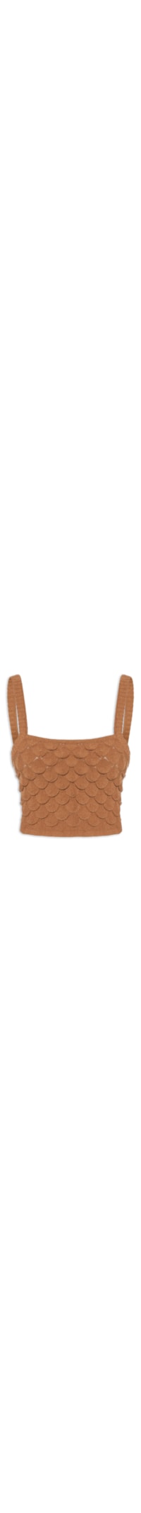 O top marrom é confeccionado em tricot com superfície texturizada e média elasticidade. A peça justa ao corpo possui decote reto, alças médias, tag metálica da marca aplicada na parte posterior e comprimento cropped*