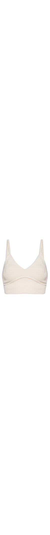 O top off white é confeccionado em tricot canelado com alta elasticidade. A peça justa ao corpo possui decote V, alças finas, cavas estendidas, recorte frontal e posterior com detalhe de vivo na altura do busto e comprimento cropped*.