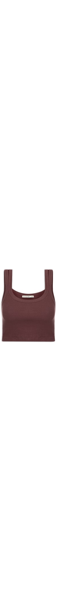 O top vinho é confeccionado por malha de algodão com superfície canelada e média elasticidade. A peça justa ao corpo possui decote redondo, alças médias duplas e comprimento cropped*.
