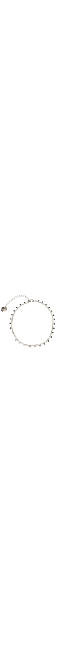 A tornozeleira prateado é produzida em metal com banho em ródio. A peça possui corrente fina, pingentes pequenos em formato circular e fechamento por fecho lagosta.