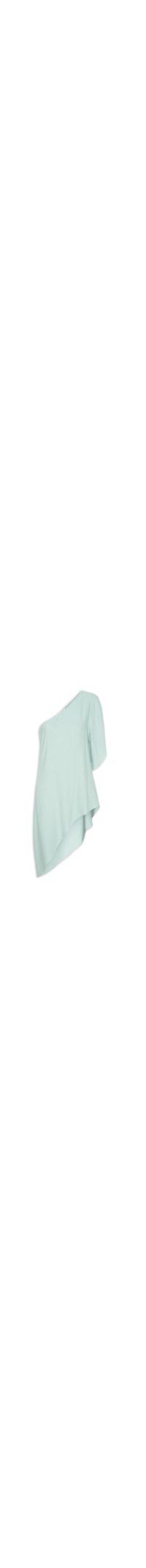 A túnica azul é confeccionada em tecido leve com com superfície texturizada e sem elasticidade. A peça modelo ombro único solta ao corpo possui decote assimétrico, manga curta ampla e barra com recorte assimétrico.