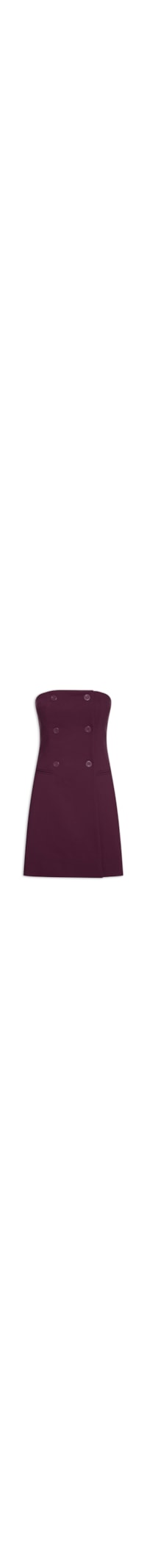 O vestido vinho é confeccionado em tecido leve sem elasticidade. A peça solta ao corpo de modelo tomara que caia possui decote reto, recortes frontais e posteriores, bolsos frontais e botões decorativos aplicados, forro, comprimento curto e fechamento posterior por zíper invisível.