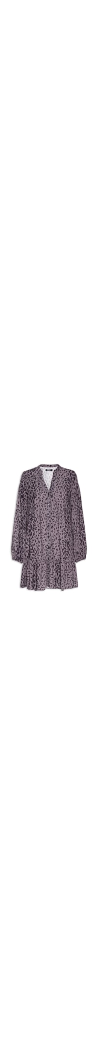 O vestido animal print é confeccionado e tecido leve sem elasticidade. A peça solta ao corpo possui gola mandarim com decote V, mangas longas bufantes com elástico embutido nos punhos, recortes fronais com detalhes de nervuras, detalhe de babados com franzidos, tag da marca aplicada na parte frontal, comprimento curto e fechamento frontal por botões.