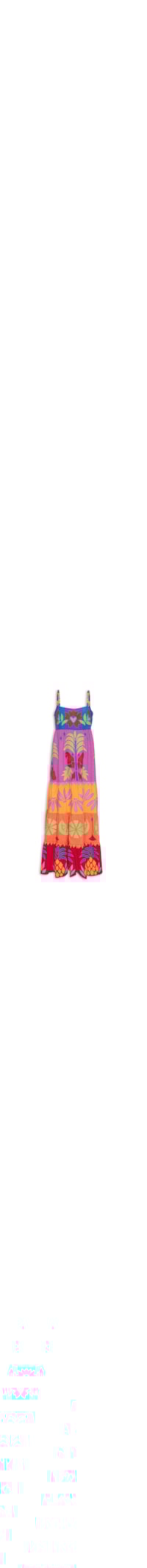 O vestido azul é confeccionado em tecido leve com toque de linho sem elasticidade. A peça justa na altura do busto e solto no comprimento possui decote quadrado, alças médias acolchoadas com recortes e miçangas em cores contrastantes e detalhe de cordões trançados na parte posterior com tassel nas ponteiras em cores contrastantes, sem bojo, recorte posterior em lastex, pences frontais na altura da cintura, recortes em cores contrastantes e com detalhe de franzidos na saia, mix de bordados na parte frontal em cores contrastantes e comprimento longo.