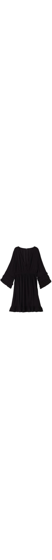 Vestido em viscose para mulher, com decote em V profundo e mangas 3/4 adornadas com elegantes babados. O cordão na cintura permite ajustar a peça.