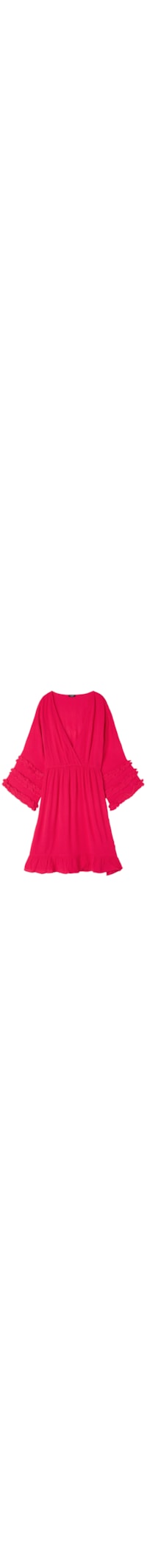 Vestido em viscose para mulher, com decote em V profundo e mangas 3/4 adornadas com elegantes babados. O cordão na cintura permite ajustar a peça.