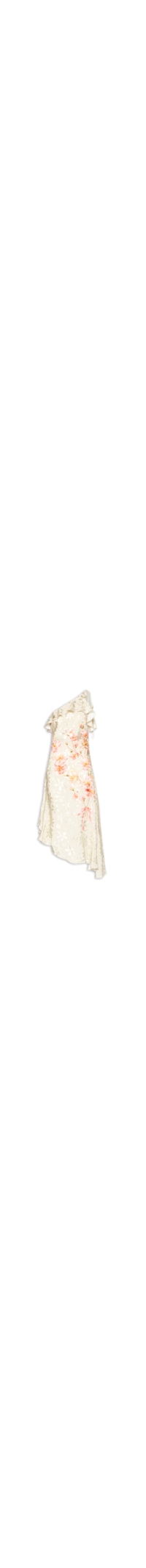 O vestido verde é confeccionado em tecido leve sem elasticidade. A peça solta ao corpo possui decote ombro único, alça fina com tira estendida para amarração, aba sobreposta na parte do busto com efeito de babados, estampa floral em cores contrastantes, barra com recorte e efeito assimétrico e fechamento lateral por zíper invisível.