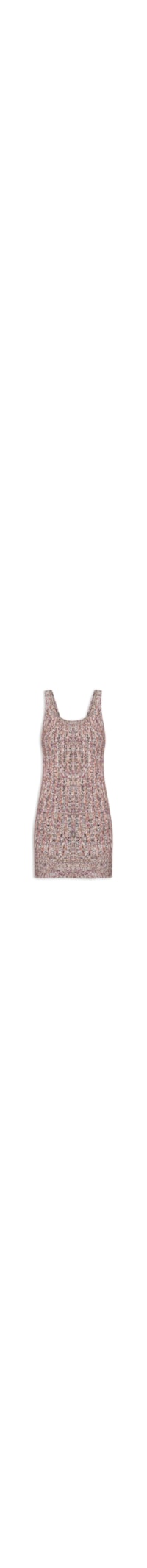O vestido rosa é confeccionado em tricot com média elasticidade. A peça justa ao corpo possui decote U, alças médias, cavas regulares e comprimento curto.
