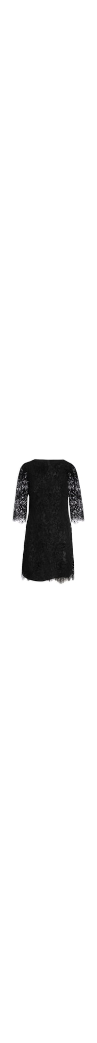 o vestido Preto é Confeccionado Em Renda Sem Elasticidade. A Peça Solta Ao Corpo Possui Decote Redondo, Mangas Curtas, Forro, Fechamento Por Zíper Posterior E Comprimento Curto.