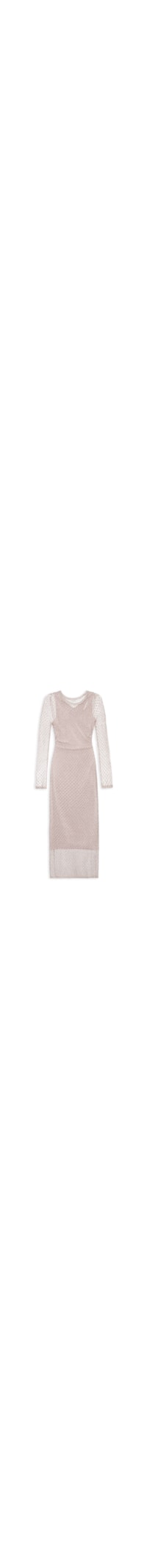 O vestido rosa é confeccionado em tricot com superfície metalizada e alta elasticidade. A peça justa ao corpo possui decote arredondado, mangas longas, transparência, tag da marca metalizada aplicada na parte posterior e comprimento midi. Acompanha forro confeccionado em malha leve com alta elasticidade. Possui decote arredondado, alças médias, recorte vazado na parte posterior e comprimento midi.