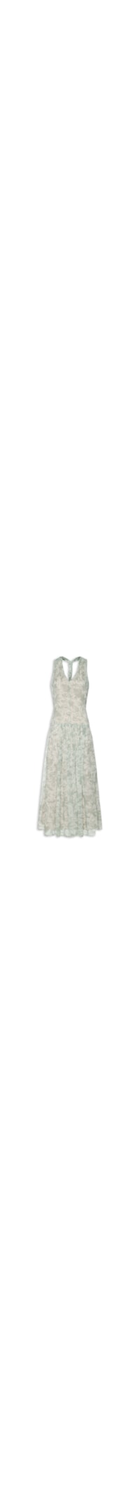 O vestido verde é confeccionado em tecido leve com baixa elasticidade. A peça solta ao corpo possui decote V, cavas alongadas, alças finas com efeito franzido, abertura posterior com decote nadador e detalhe trançado, recortes frontais e posteriores, forro, padronagem de flores na cor verde e comprimento midi.