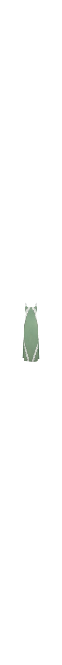 vestido longo confeccionado em viscose em tom verde com aplicações em renda de guipuire. possui alças finas e delicadas que se encontram nas costas para proporcionar maior liberdade na amarração. nas laterais, fendas discretas que arrematam a modelagem e a deixam mais confortável e soltinha. perfeito para o verão!