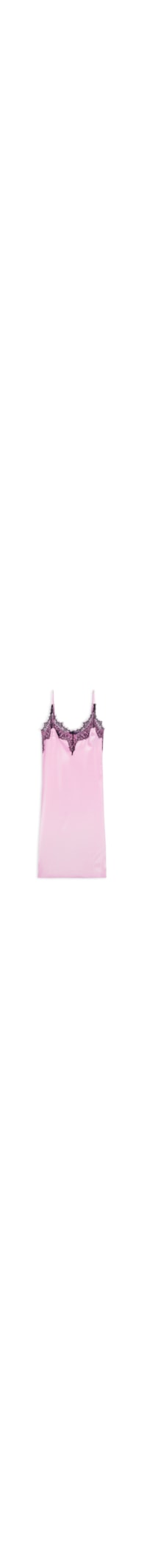 O vestido rosa é confeccionado em cetim sem elasticidade. A peça solta ao corpo de modelo slip dress, possui decote em V com aplicação de renda, alças finas reguláveis, recorte no busto e comprimento mini.
