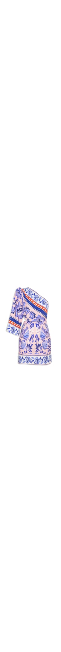 O vestido rosa é confeccionado em tecido leve. A peça possui decote ombro único, manga 7/8 ampla, detalhe de pregas na altura do ombro, recorte lateral vazado e detalhe de franzido na altura da cintura, mix de estampas em cores contrastantes, comprimento curto, shape solto, caimento reto, acabamento pespontado e fechamento lateral por zíper invisível.