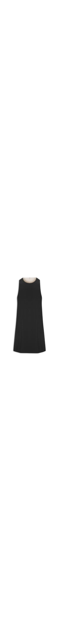 O vestido preto é confeccionado em tecido leve de baixa elasticidade. A peça solta ao corpo de modelo dupla face possui decote redondo, cavas estendidas, pences frontais, detalhe de costura sobreposta, acabamento em corte a fio, comprimento curto e fechamento posterior em recorte vazado com botão de pressão aplicado. A outra face possui tom contrastante, pences frontais, tag da marca aplicada na lateral com escrita em tom contrastante e detalhe de costura sobreposta.