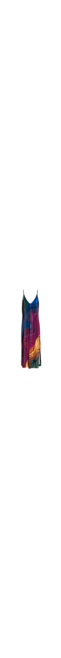 O vestido preto é confeccionado em veludo de média elasticidade. A peça solta ao corpo possui decote V, alças finas reguláveis, fendas laterais, forro superior, estampa abstrata com recortes em cores contrastantes e comprimento midi.